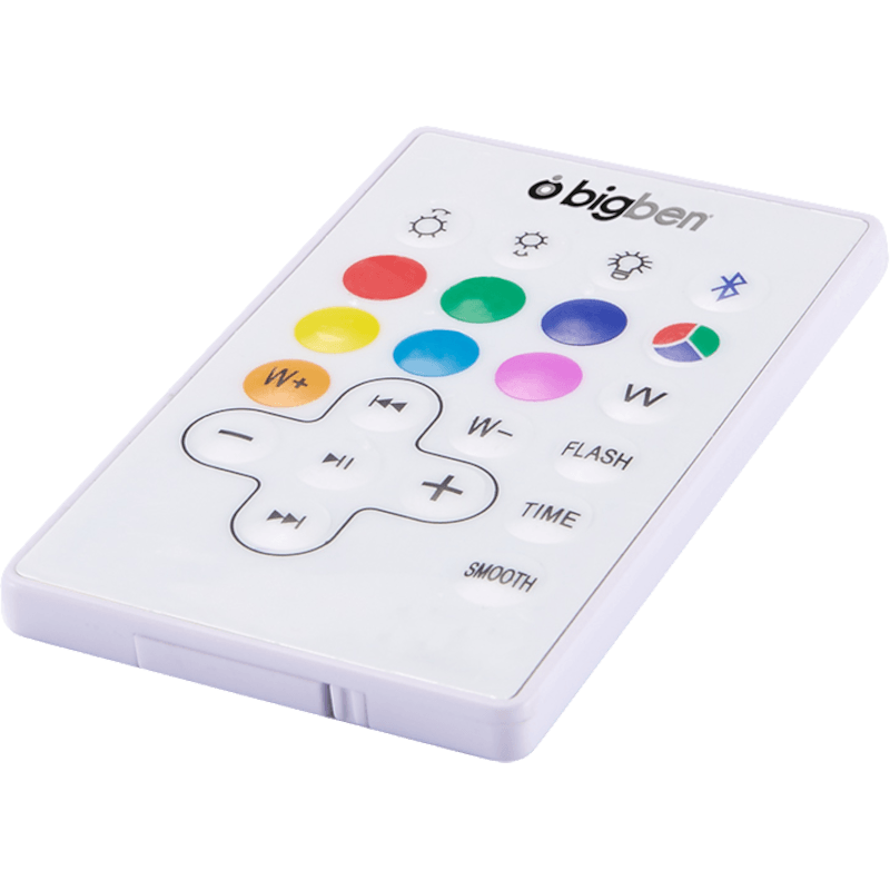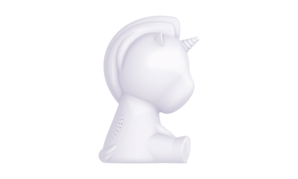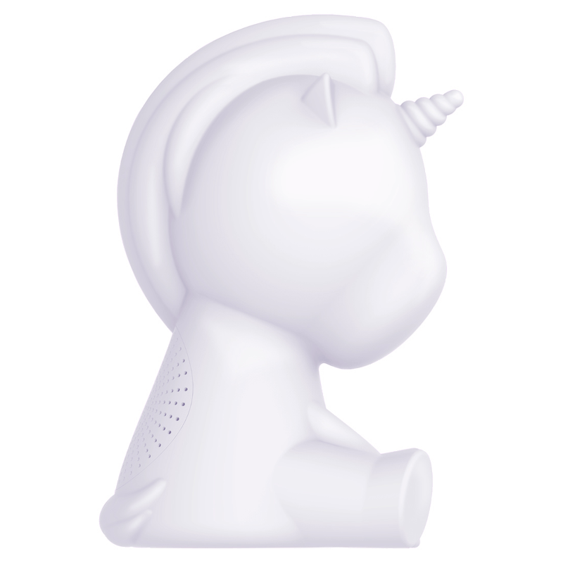 Głośnik Bigben Jednorożec może się mienić barwami. Dołączonym do zestawu pilotem jednym przyciskiem wybierzesz kolor i intensywność podświetlenia. Dopasuj oświetlenie do wnętrza lub pory dnia. Głośnik Bigben Jednorożec nie tylko przyjemnie gra, lecz także cieszy swoim uroczym kształtem i wielokolorowym podświetleniem.
