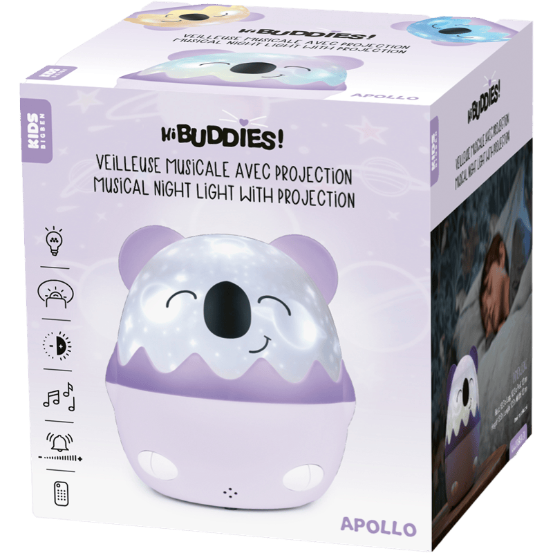 Coco oferuje pełną kontrolę nad oświetleniem i dźwiękiem. Możesz wybrać spośród 4 kolorów światła, 6 poziomów jasności oraz dostosować głośność melodii. Timer z opcjami 15, 30 i 60 minut pozwala na automatyczne wyłączenie urządzenia, co jest praktyczne podczas usypiania dziecka. Pilot zdalnego sterowania ułatwia obsługę, nawet z większej odległości.